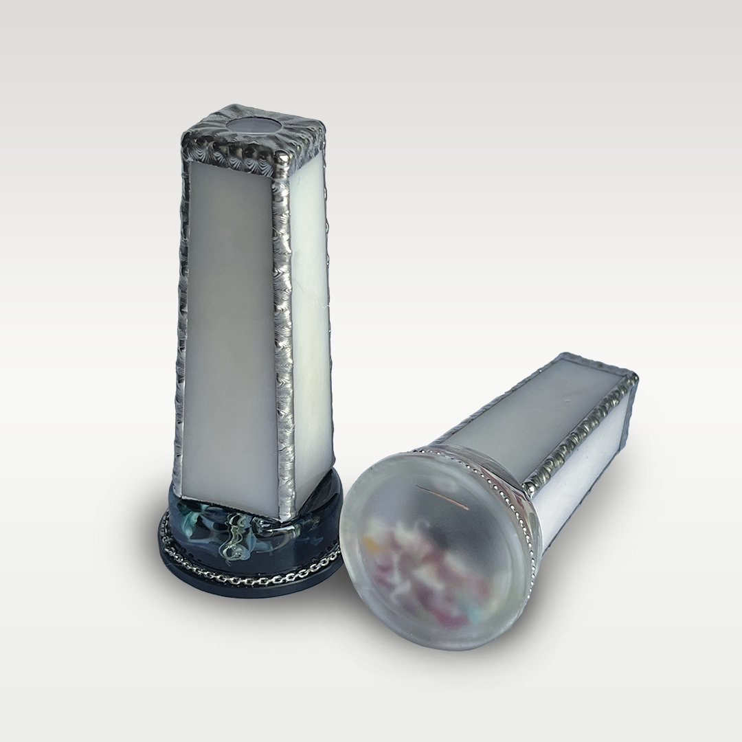 作家・かたおかきくよによる万華鏡ワークショップ 万華鏡の仕組みなどを学びながら、ステンドグラスのボディを用いてご自身だけの本格的なオリジナル万華鏡を作ります。 オイルかドライのお好きなスコープタイプで、オブジェクト(具材)は100種類以上の手づくりのガラスオブジェクトからお選びいただけます。 【制作内容】 タイトル:『小さな塔』 スコープタイプ:オイルかドライをお選びいただけます ミラーシステム:3ミラー 6ポイントイメージ 【ワークショップの流れ】 @万華鏡についてのお話 Aオブジェクトの選び方講座 Bオイルかドライタイプかを選択 Cオブジェクト+オブジェクトケースの背景色選び(黒or乳白色) Dオイル入れ+接着 ※ご自身で行います。 ☆完成☆ 空・水・風・宇宙 自然をテーマに手のひらサイズのステンドグラス万華鏡を作っています 「ポケットの中の宝物」になりますように 講師:かたおかきくよ