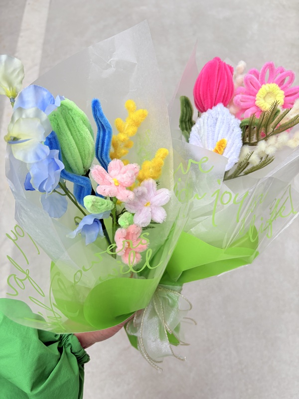 ワークショップで作ったブーケに、会場で販売しているモールフラワー(単品)を追加してボリュームアップすることもできます。