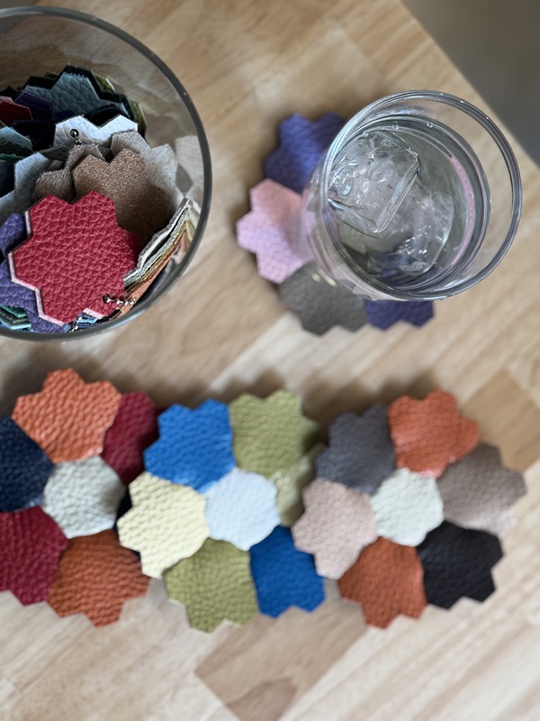 レザーの端切れを使って、自分だけのコースターを作るワークショップです。