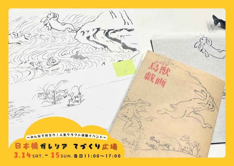 国宝鳥獣戯画を墨で描くワークショップです。初めての方も大歓迎です。 筆と和紙を使い、日本最古の漫画と言われる鳥獣戯画をなぞり書きして頂きます。 仕上げに押印をし、ご自身で制作した作品はお持ち帰り頂けます。